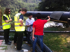 工作人員正在使用英國Geotech的便攜式沼氣分析儀 GA5000,GA2000,分析管道中CH4,CO2,O2,H2S,CO濃度,同時進(jìn)行壓力、流量、溫度的檢測。